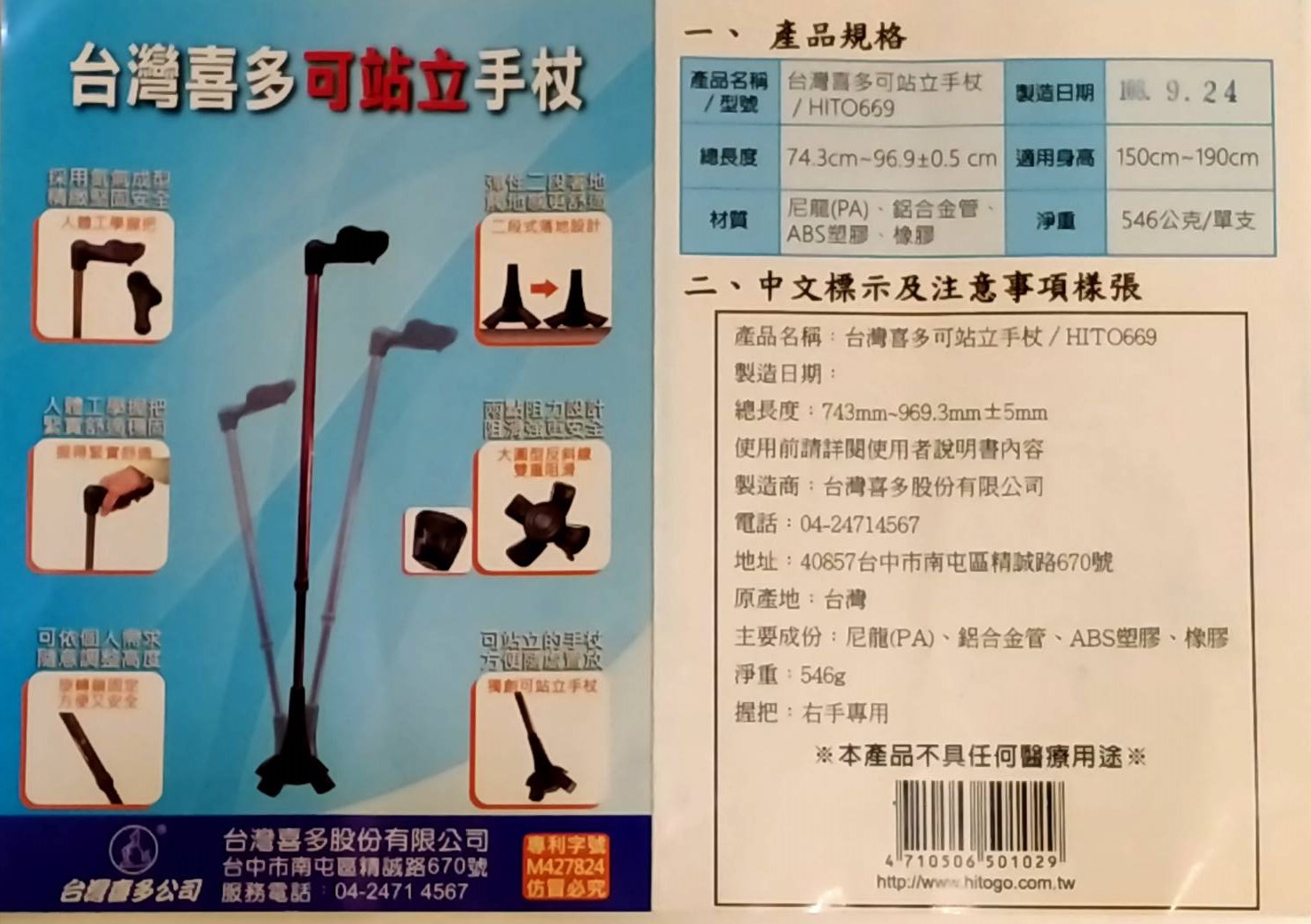 光禾館~台灣喜多可站立手杖-右手