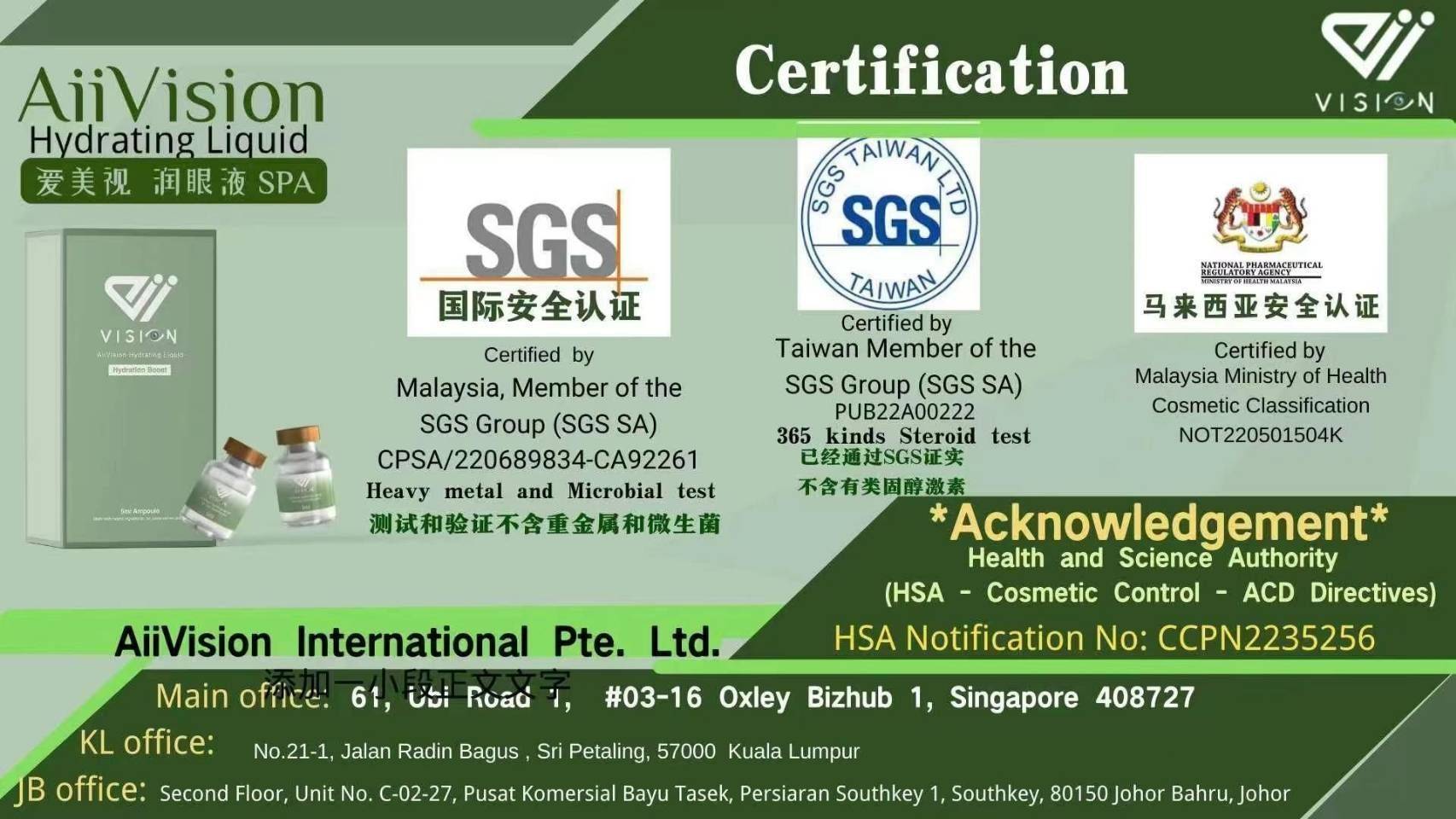 主要技術與成份能快速使眼睛周圍皮膚吸收而達到淤堵現像緩解 ,增加代謝,滋潤眼球周圍,讓眼睛補充營養。愛美視潤養液採用的是德國先進的微分子切割技術,細如髮絲的萬分之一,營養精華切割成微細分子狀態,讓眼部周圍毛細孔快速充分的吸收營養。
